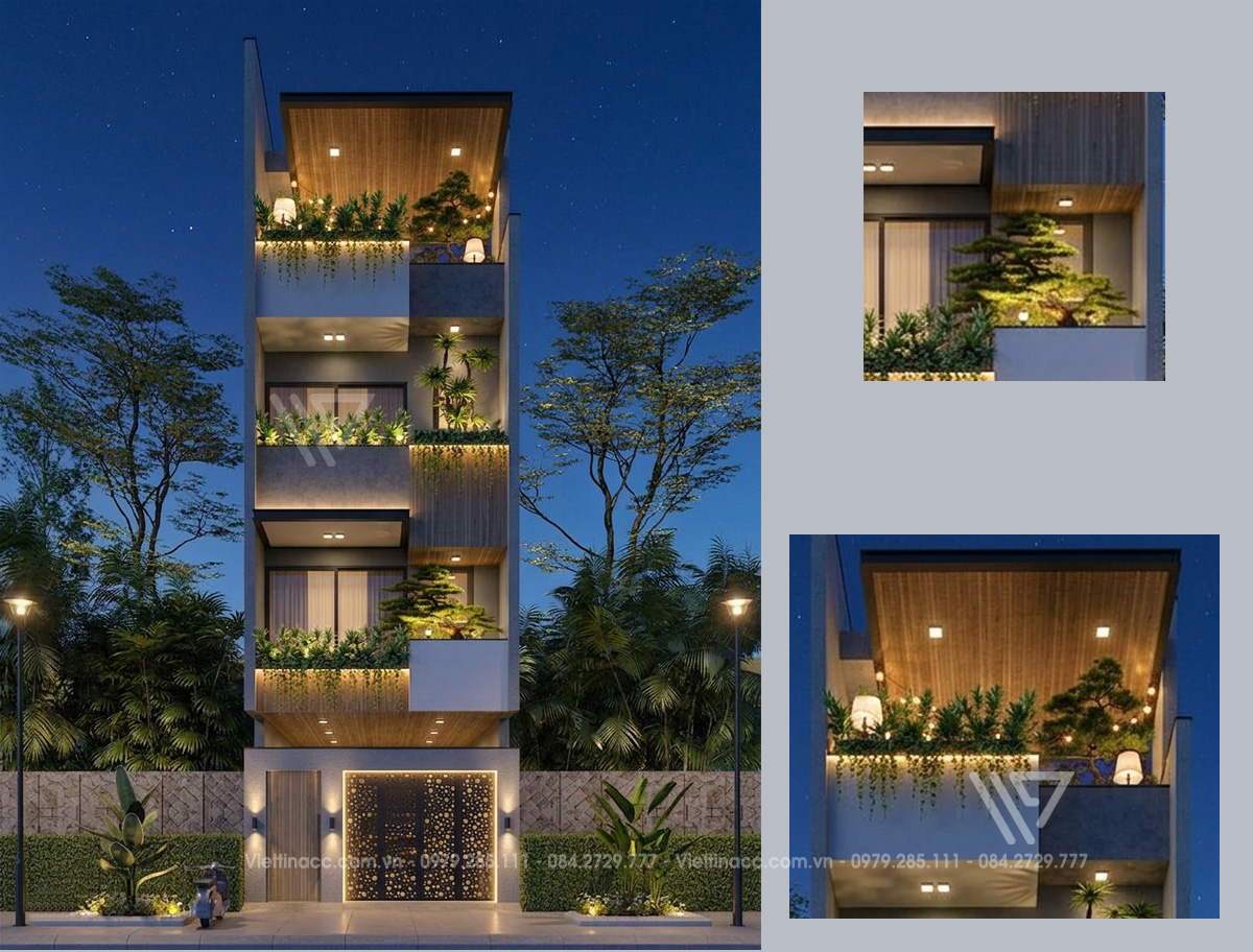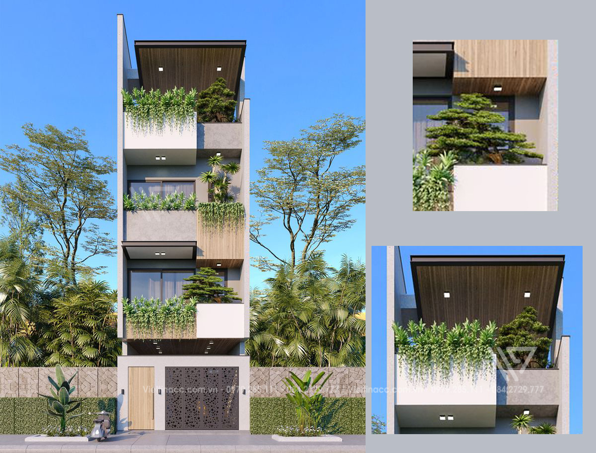 ban công thiết kế nhiều cây xanh tạo cho ngôi nhà vẻ dịu mát và hài hòa với thiên nhiên
