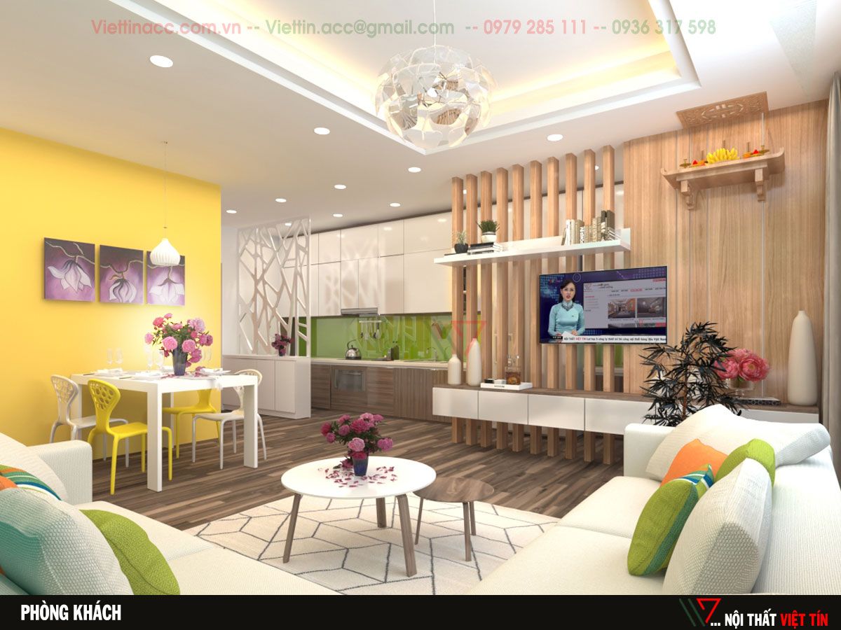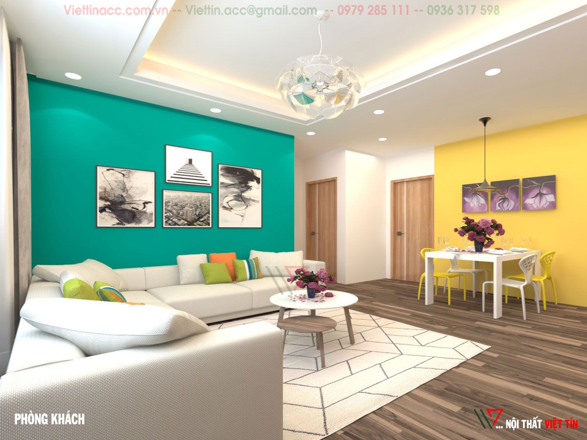 Nội thất Việt Tín đã thiết kế căn hộ với phong cách hiện đại, trẻ trung theo đúng sở thích của cặp vợ chồng trẻ 9x năng động, trẻ trung và thành đạt